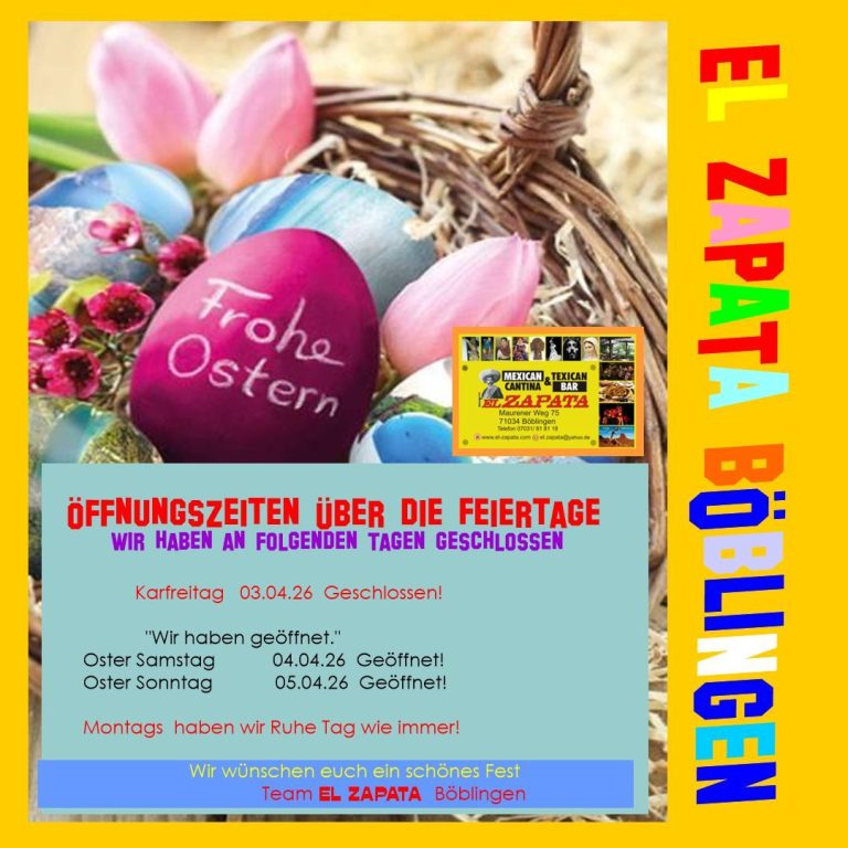 Unsere Öffnungszeiten über Ostern sind: